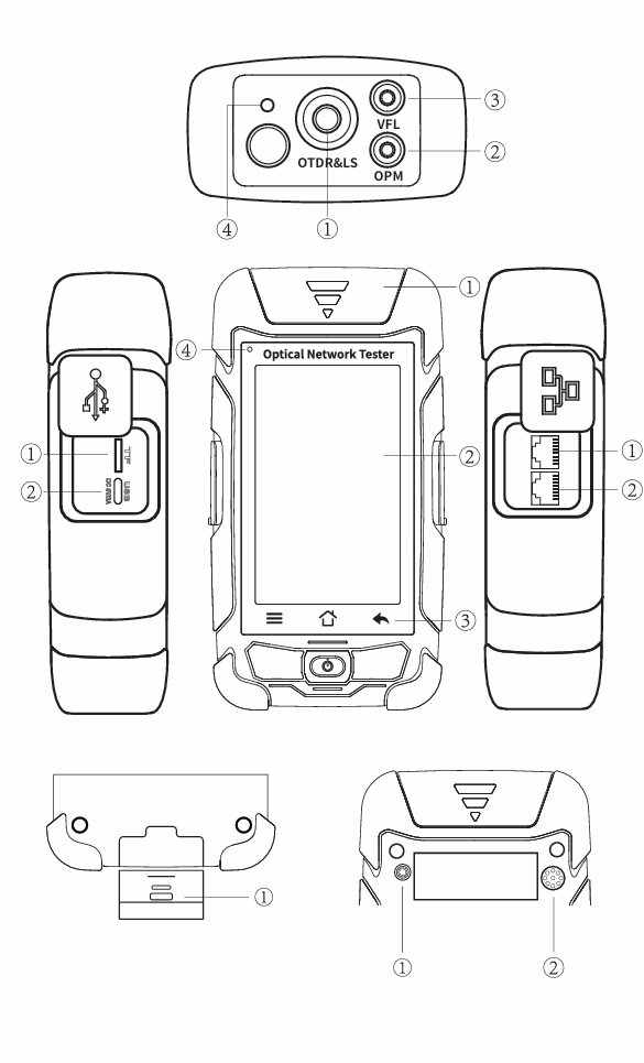 ① OTDR/LS port            ① Dust Cover                                 ① TF Card Port