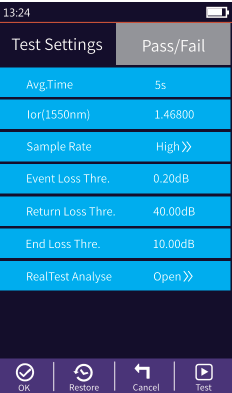 Set: Avg.Time and IOR are the same as those in Auto OTDR.