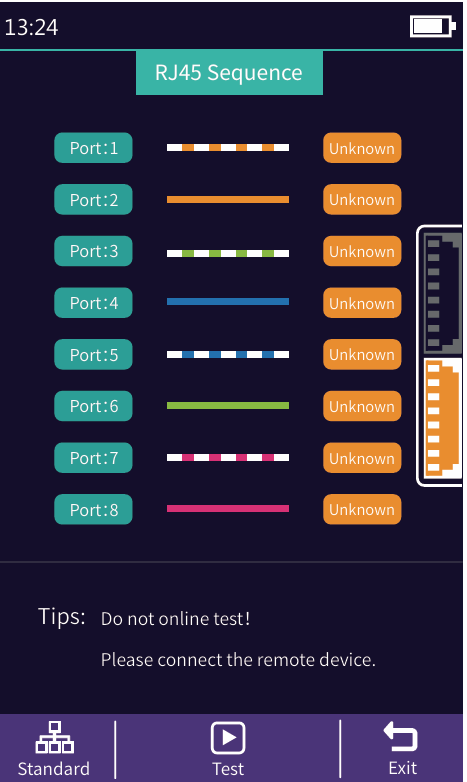 Measure the sequence of 8-core wires inside the network cable. Please connect to the remote module when measuring.