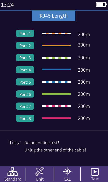 The cable length port is designated as the lower interface displayed in yellow. Incorrect connection will cause damage!